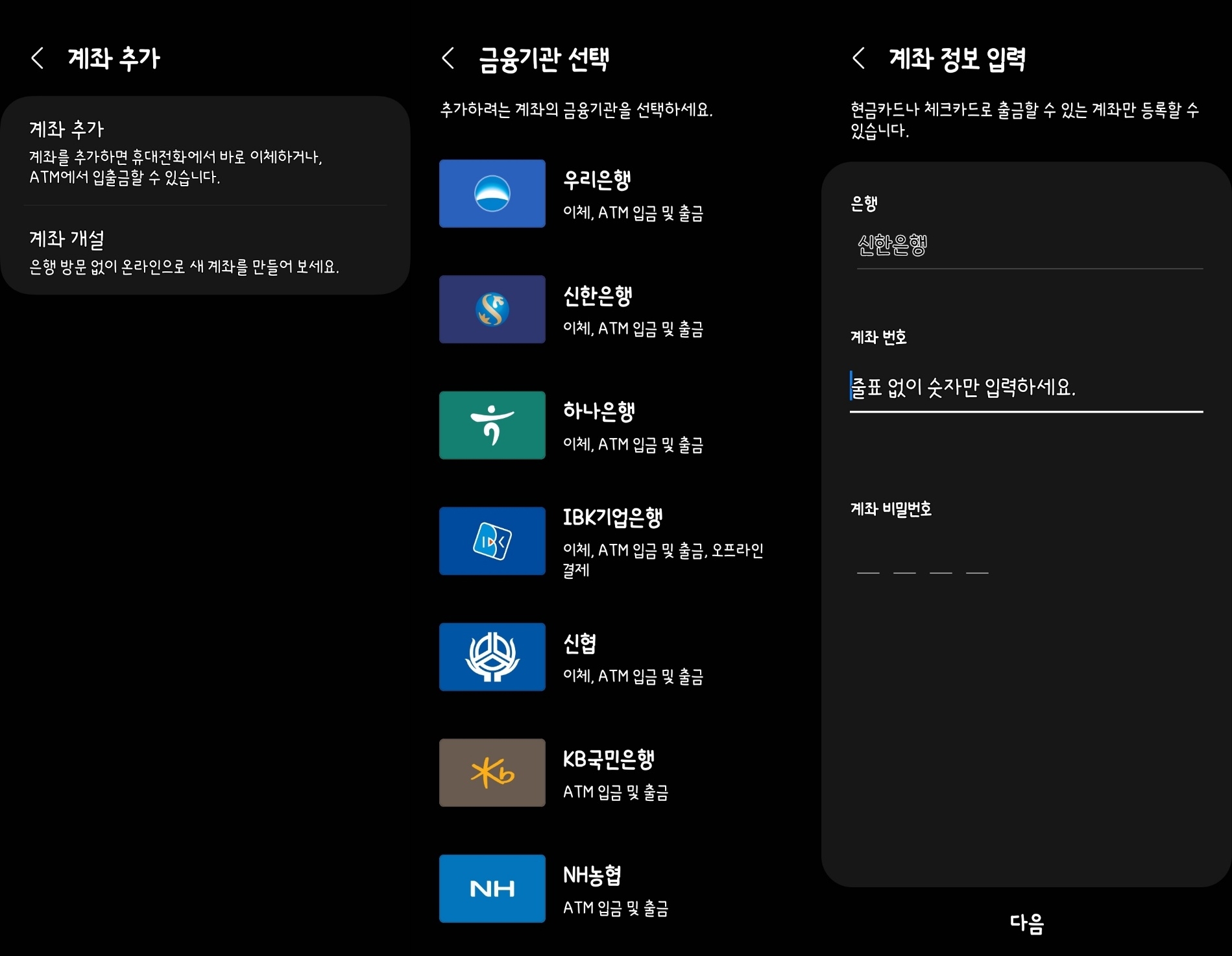 (삼성페이 앱 추가버튼-계좌-추가버튼)