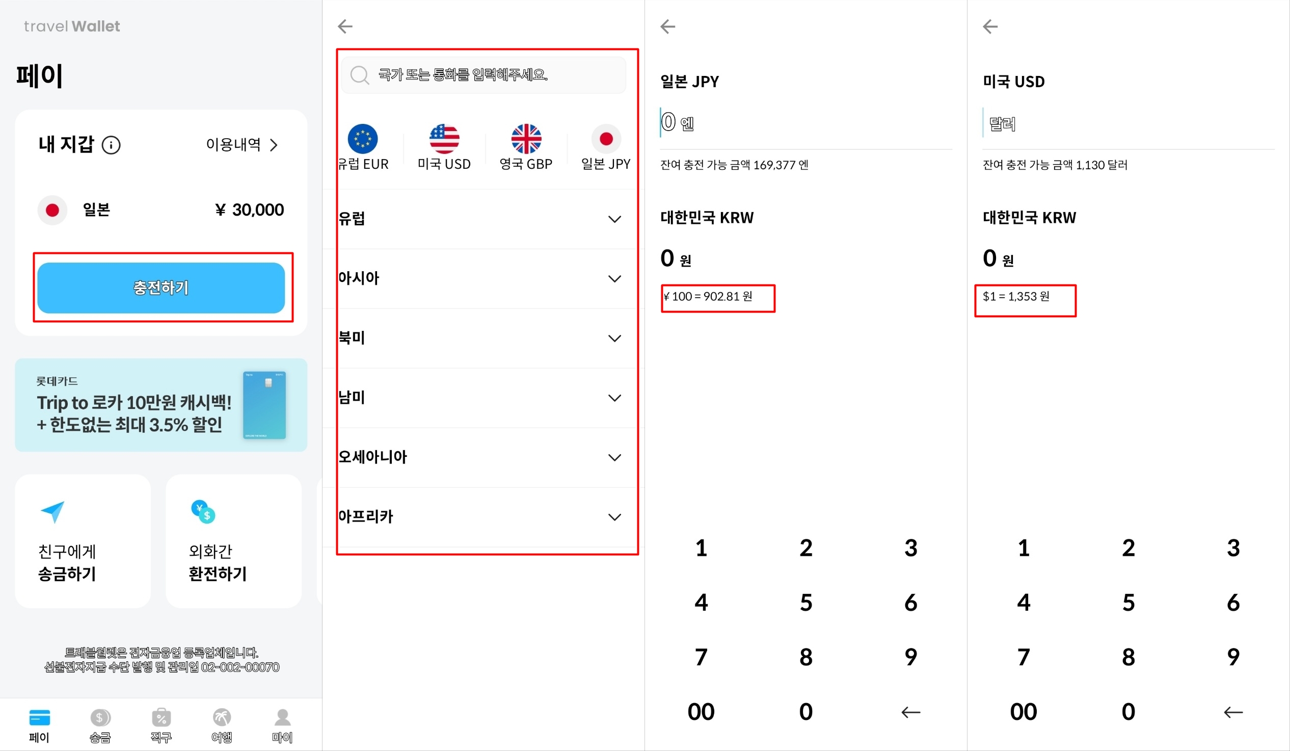 다음은 트래블 월렛으로 외화를 충전하거나 환전하는 방법입니다.