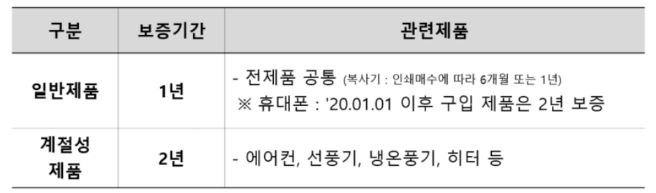 - 기본 전자제품 보증기간 연장