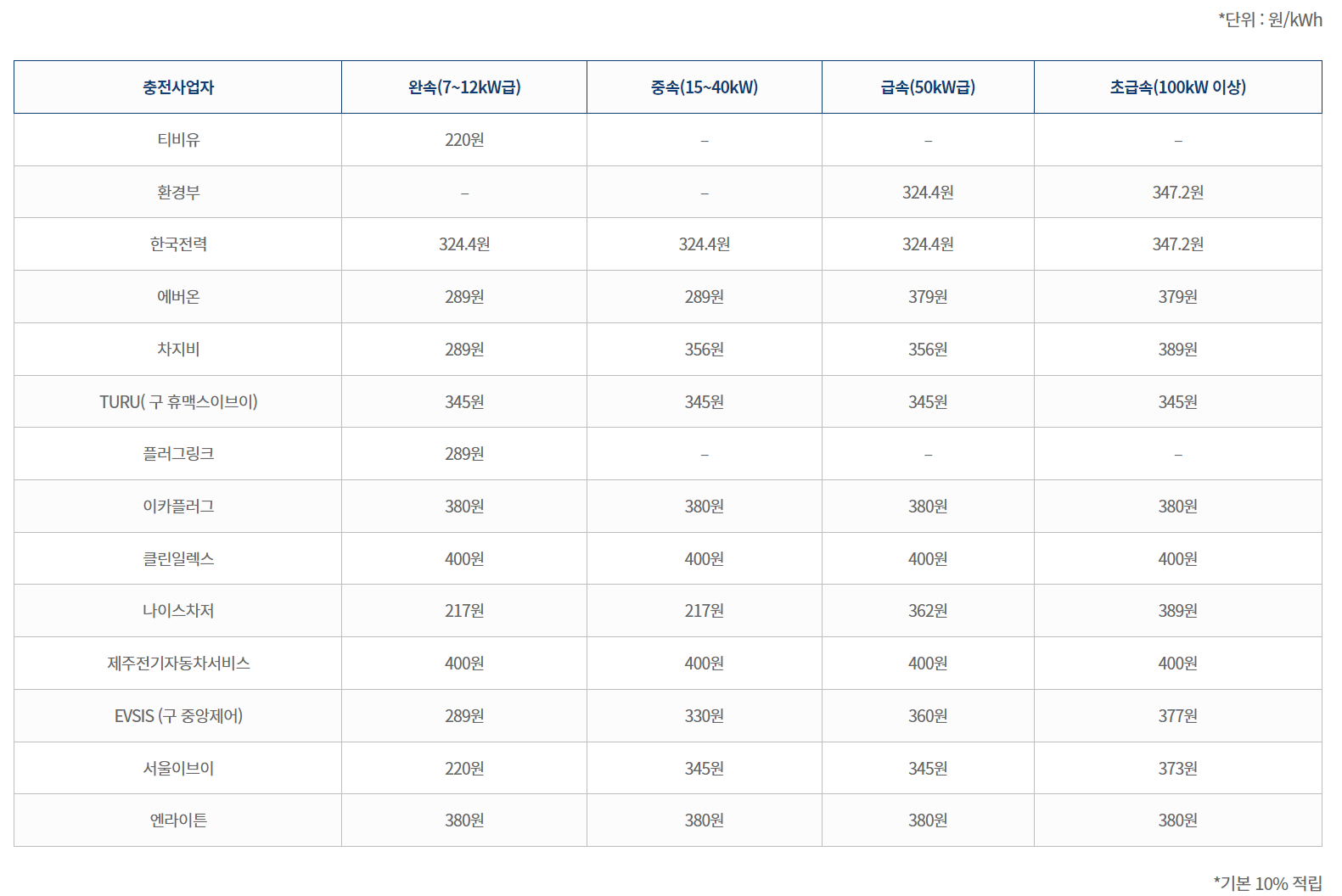 다음은 일렉베리의 로밍제휴사 명단 및 제휴사별 충전요금입니다.