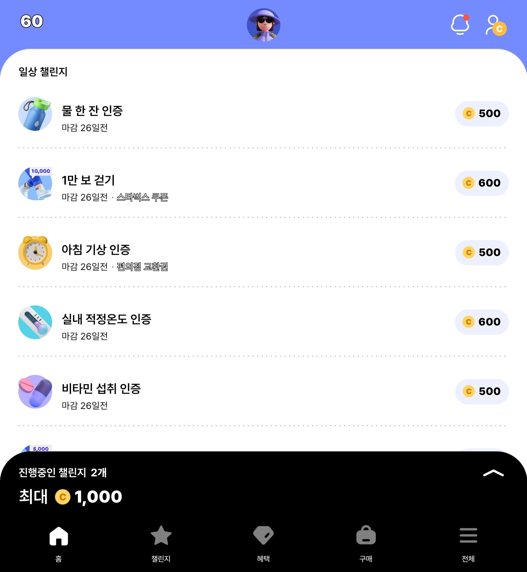 발로소득 앱은 물 한잔 마시기, 만 보 걷기, 아침 기상 인증 등과 같은 일상 챌린지로도 포인트를 적립할 수 있으며, 천걸음 당 3포인트를 적립받을 수 있어 총 만 걸음을 걸었을 때 30포인트를 적립할 수 있습니다.