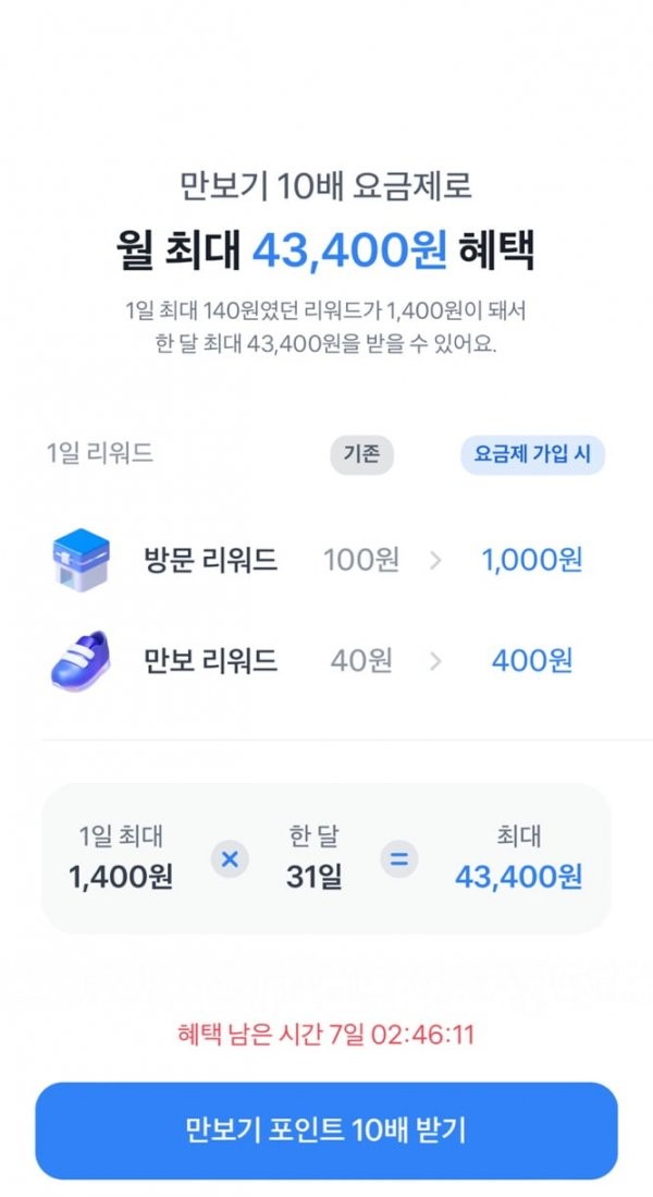 계획에 미스가 생겼습니다. 음~ 슈퍼워크 베이직 모드가 1일 만보기준에 200원 정도가 나오기에...프로모드...