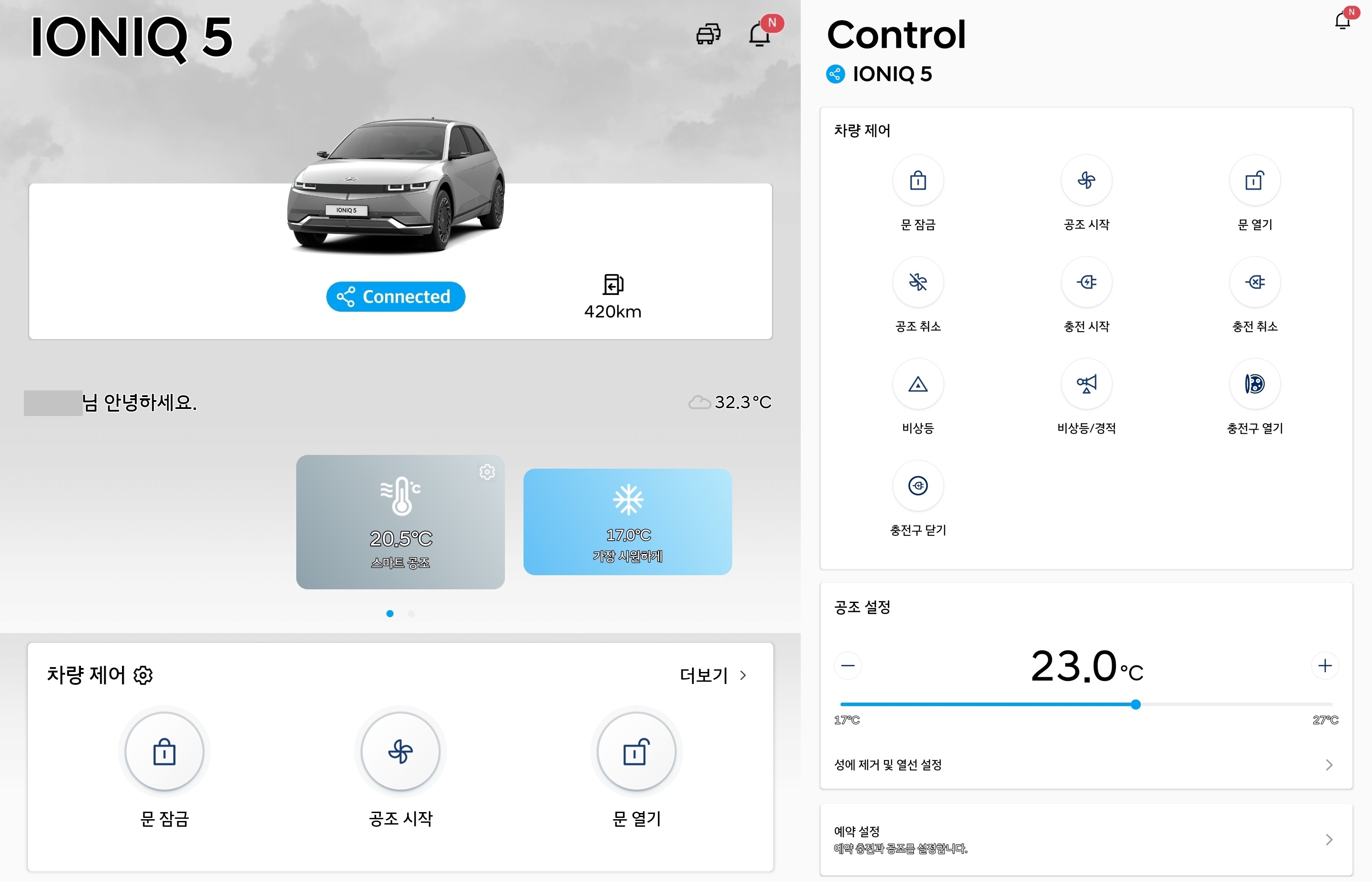 블루링크 앱에서 가장 유용한 기능은 예약 설정과 원격 공조 제어라고 생각합니다.